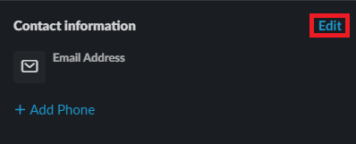 4.Klik påRedigereknappen ved siden afKontaktoplysningerfor at indsætte din e-mail og telefonnummer i din profil.