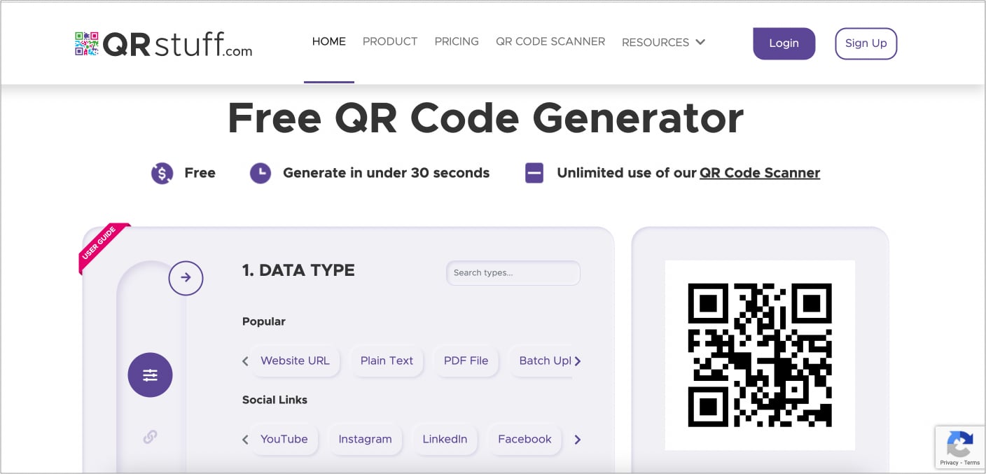 I modsætning til andre websteder fungerer QRStuff både som en QR-kodegenerator og en online QR-kodebygger. Jeg elsker at bruge denne hjemmeside, da den giver ubegrænsede statiske QR-koder og livstidsgyldige dynamiske koder og er fuldstændig reklamefri.