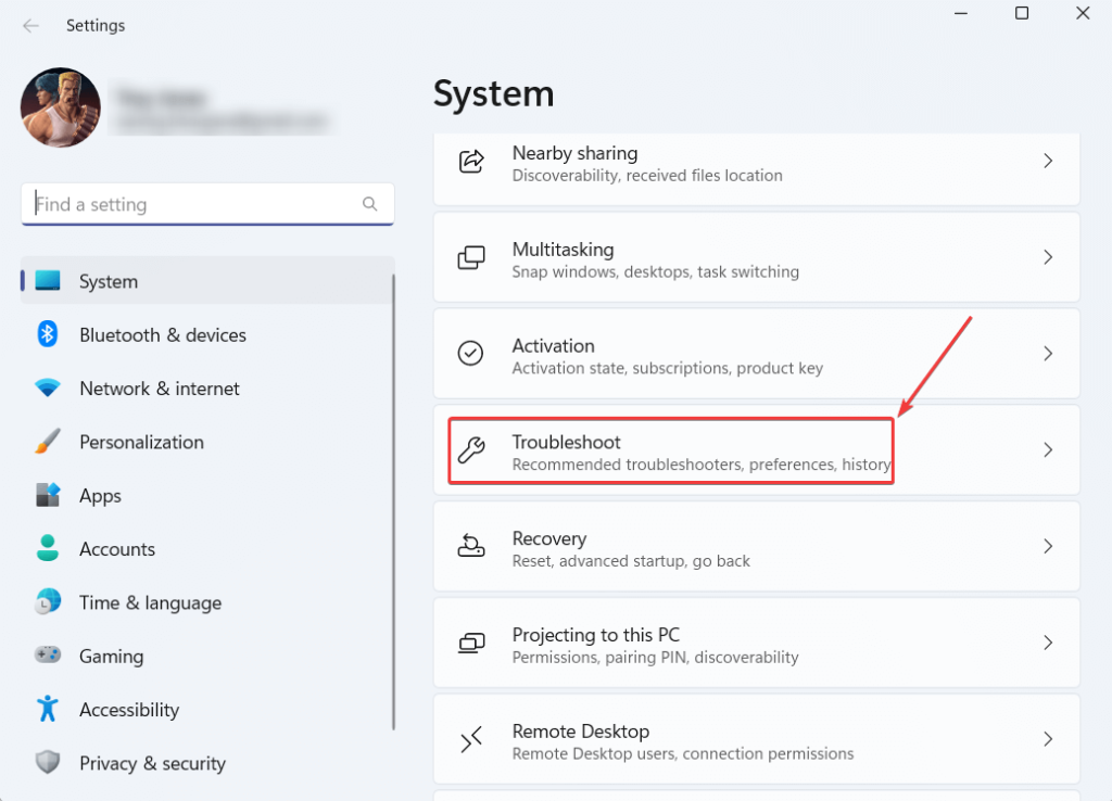 Trin 3 –Klik på fra højre sideFejlfinding.