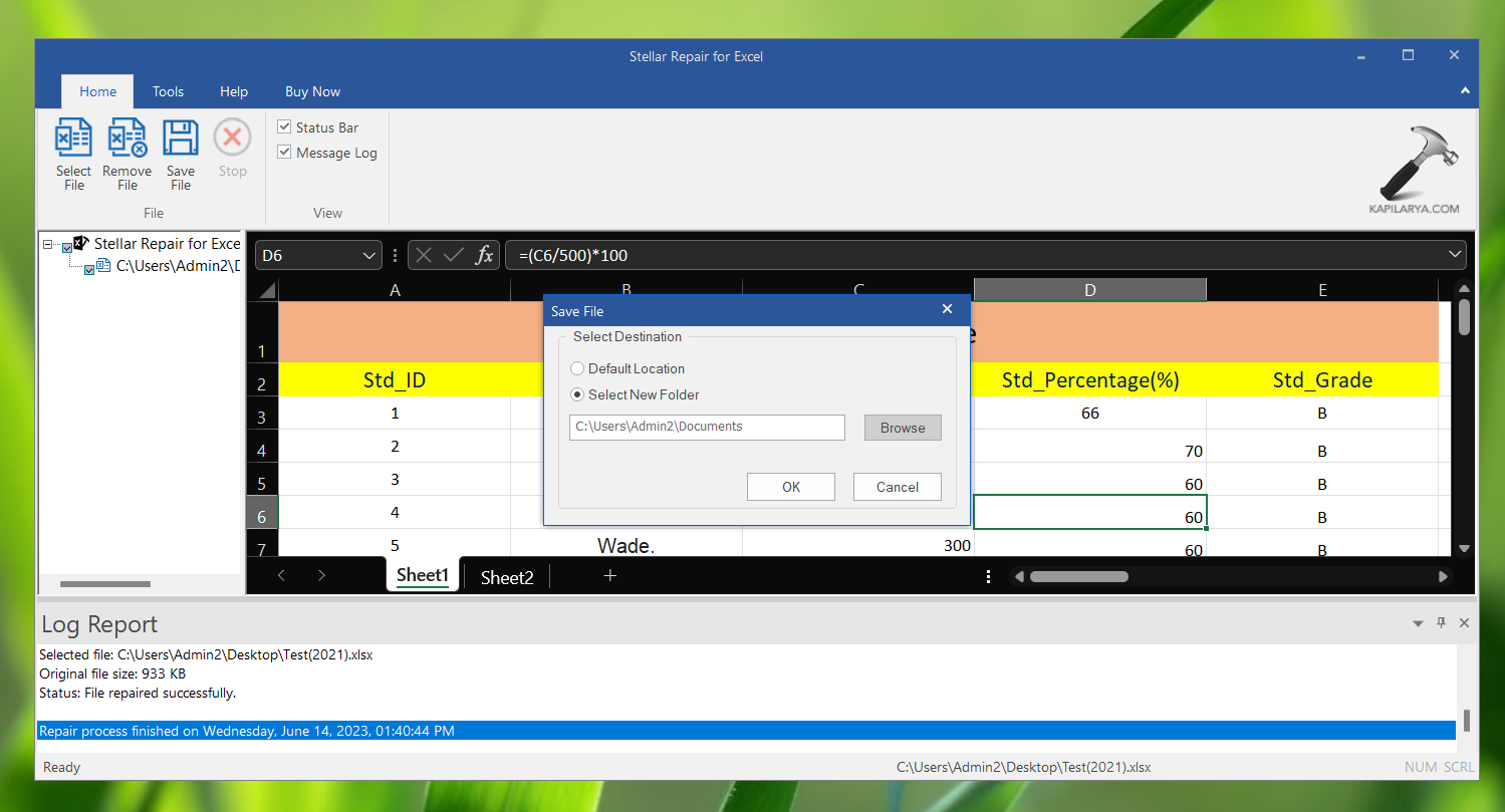 - Vælg nu en placering for at gemme den reparerede Excel-fil.