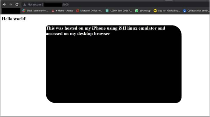 Når du er færdig, kan du nu køre HTML-filen via iSH-serveren ved at gå til serveradressen via: