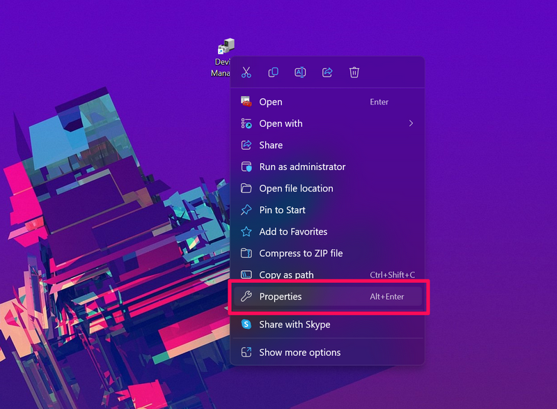 En anden nem måde for admin-kontobrugere at køre Enhedshåndtering som administrator på Windows 11 pc'er og bærbare computere er via en tilpasset genvej til det nævnte program. Med denne metode lærer du, hvordan du kan oprette en genvej til Enhedshåndtering-programmet og konfigurere det til altid at køre som administrator på din Windows 11-enhed.