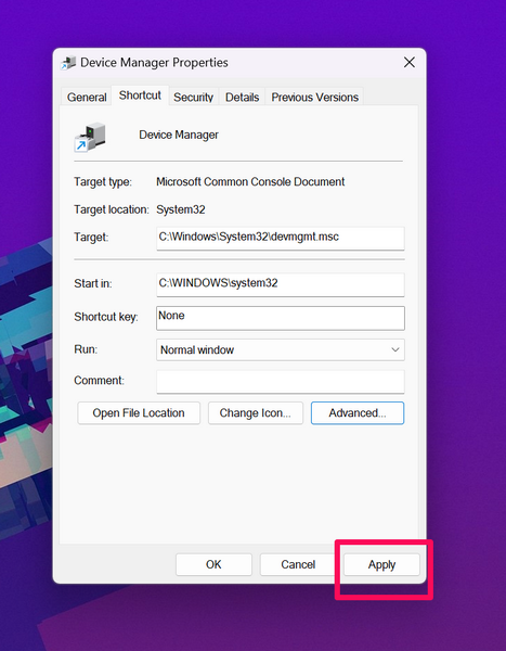 3. Opret en genvej til Enhedshåndtering med administrative rettigheder