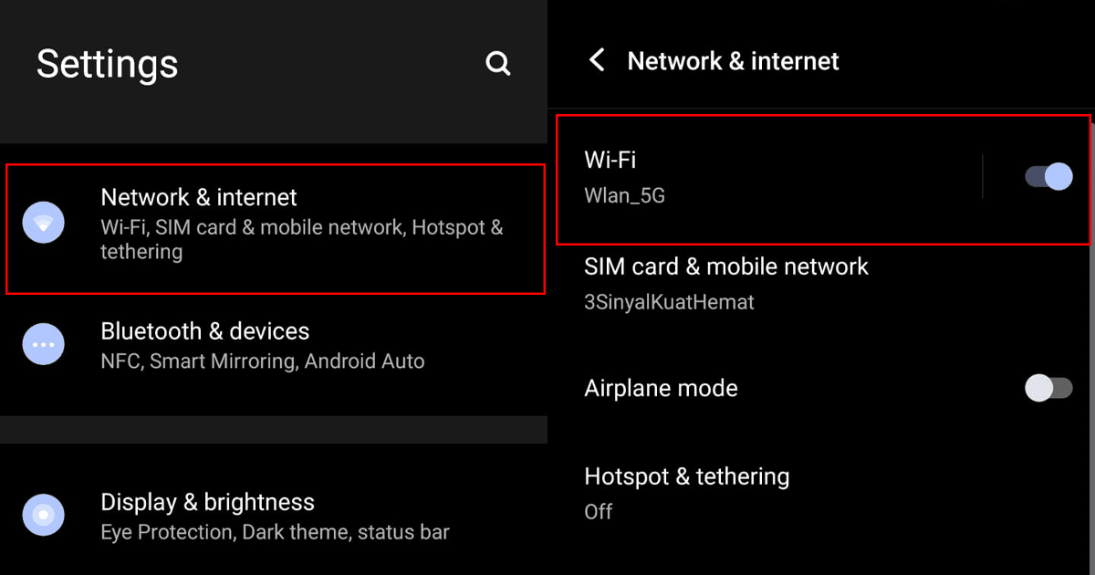 - Gå til Netværk og internet> tryk på Wi-Fi.