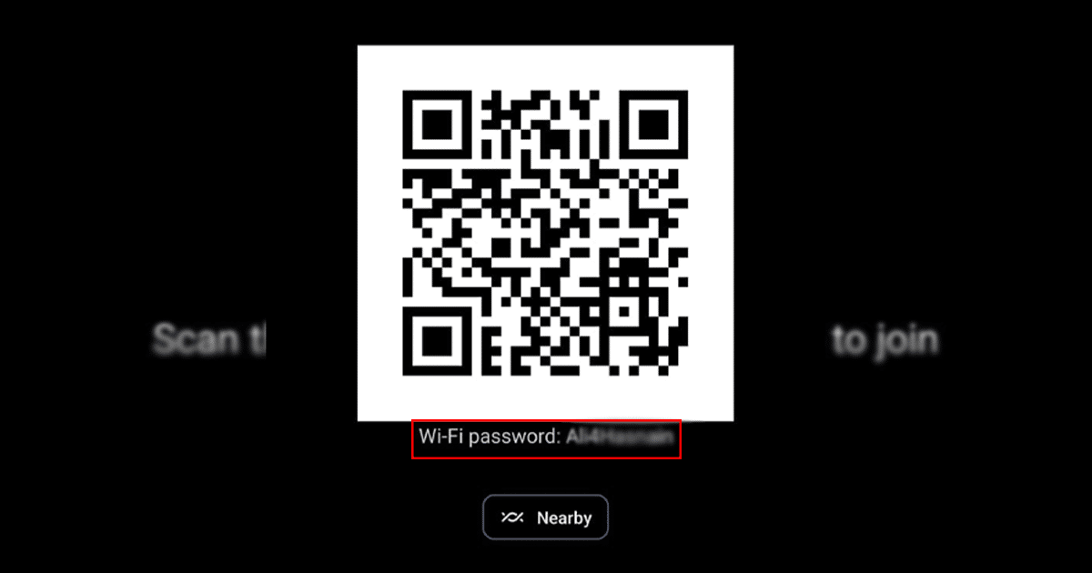 - Under QR-koden vil adgangskoden blive vist, så alle under Android 10 kan bare indsætte adgangskoden.