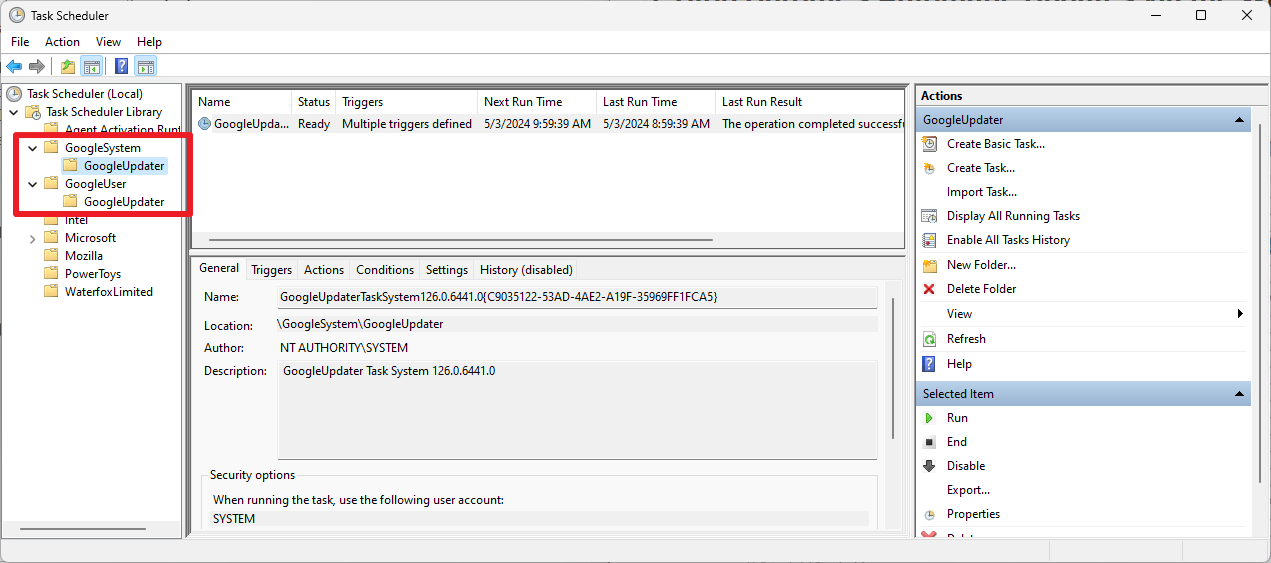 - Gentag trinnene for enhver anden GoogleUpdater-opgave.