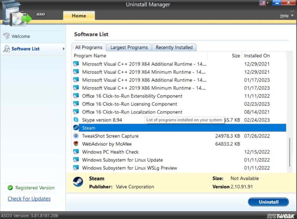 Du kan også bruge en tredjeparts software afinstallationsprogram, som vil hjælpe dig med at fjerne appen helt. Dette betyder, at det også vil hjælpe dig med at fjerne eventuelle rester eller uønskede filer, der ellers er udeladt. Advanced System Optimizer er et sådant værktøj. Det er primærtet effektivt pc-oprydnings- og optimeringsværktøj, men det har også et dedikeret modul til at afinstallere applikationer. For at afinstallere software ved hjælp af Advanced System Optimizer –