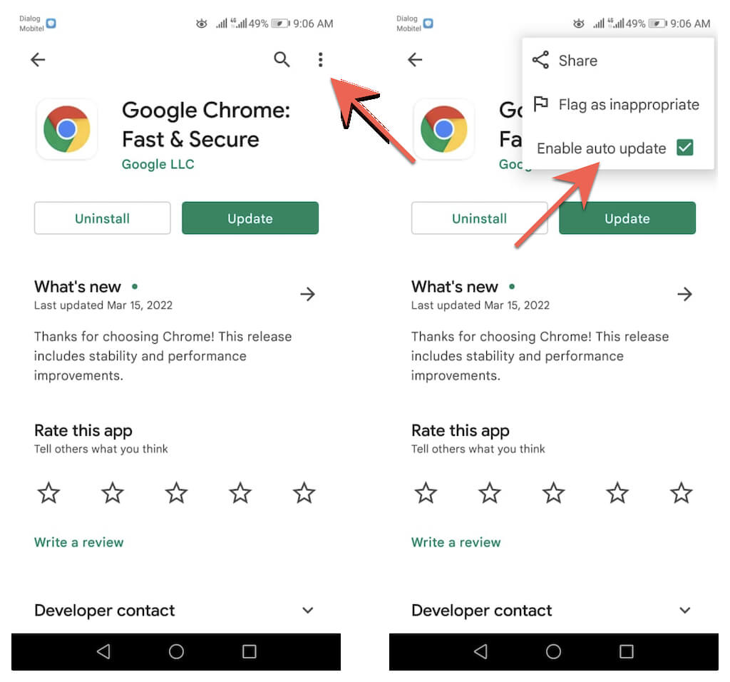 Det er hurtigt og nemt at opdatere din browser på Android. Hvis manuelle opdateringer føles som et træk, så glem ikke at konfigurere automatiske opdateringer i Google Play Butik.