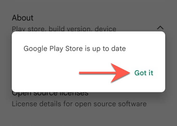 2. Tryk påIndstillinger>Om>Play Butik version>Opdater Play Butik.