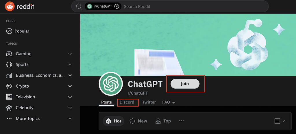 En anden måde at få adgang til ChatGPT uden krav om et telefonnummer er ved at bruge Reddit ChatGPT Discord-kanalen.