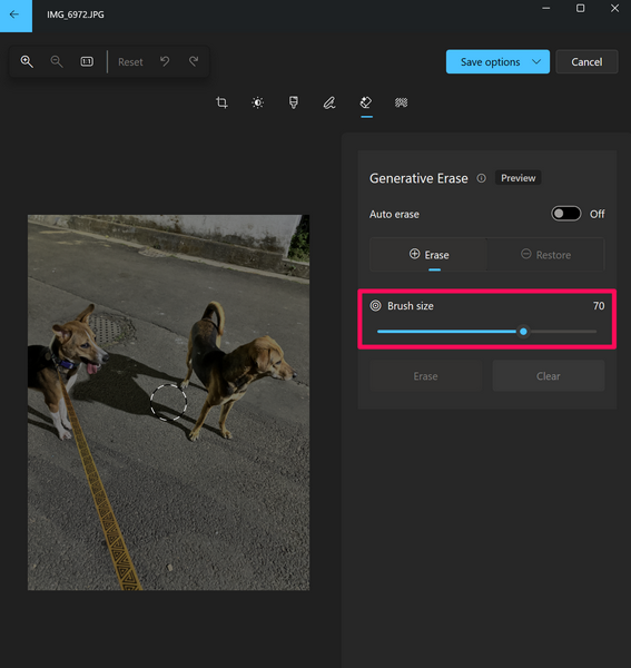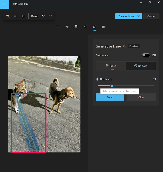 Nu tilføjede Microsoft endelig funktionen til sin Fotos-app på Windows og kalder den Generativ sletning. Det er i det væsentlige en udvidelse af den eksisterende Spot fix-funktion i Photos-appen og giver brugerne mulighed for at fjerne uønskede objekter fra billeder. Hullerne skabt af de fjernede objekter udfyldes automatisk med AI-genererede resultater for at holde billederne realistiske.
