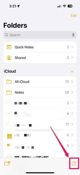 2.Tryk påNy noteknappen i nederste højre hjørne af skærmen tiloprette en ny note.