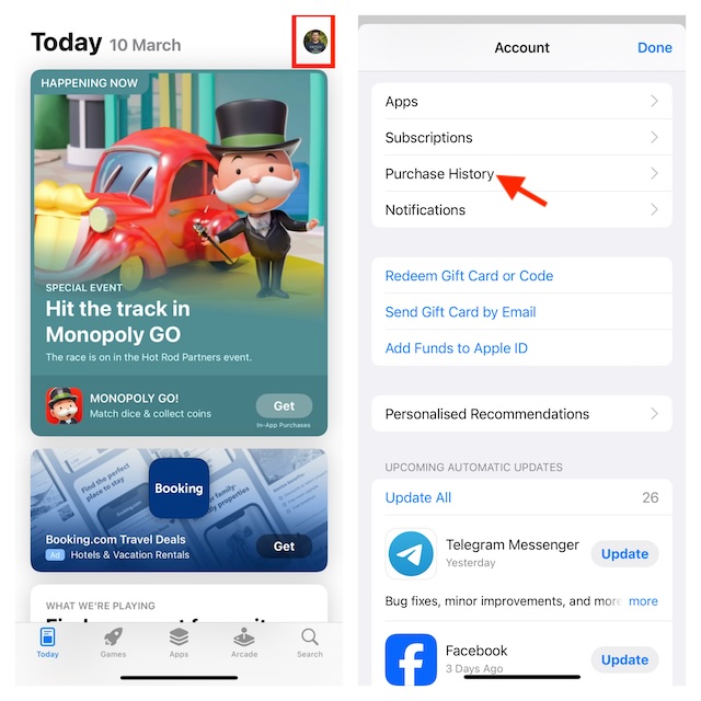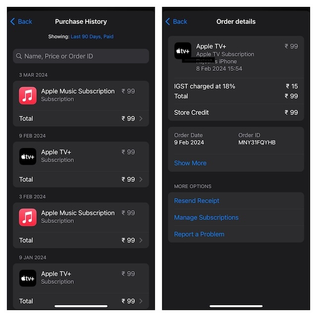 Tjek Apple ID-købshistorik fra appen Indstillinger på iOS og iPadOS