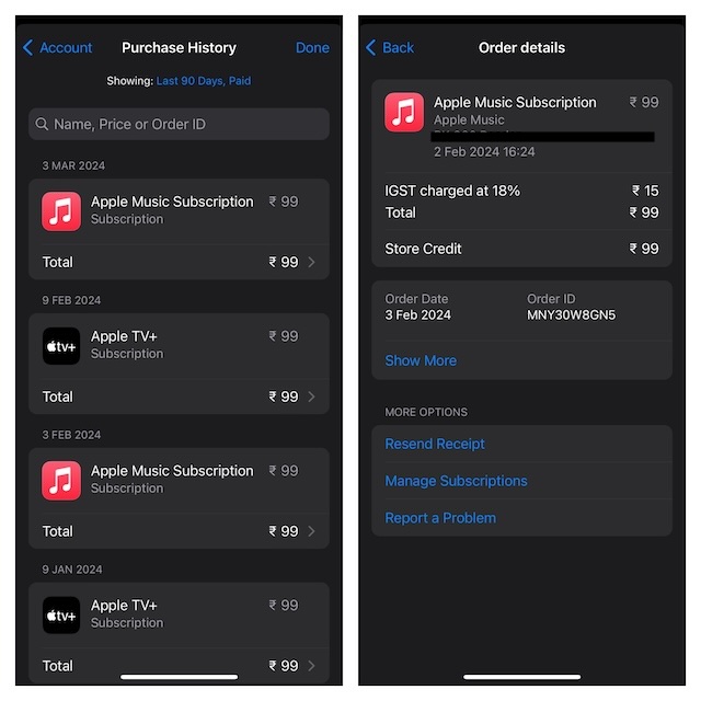 Med udgivelsen af iOS 17.4/iPadOS 17.4 har Apple tilføjet en dedikeret "Købshistorik" til App Store. Derfor behøver du ikke længere at grave i Indstillingerne eller for den sags skyld gå gennem rundkørslen for at få et kig på de omfattende ordredetaljer.