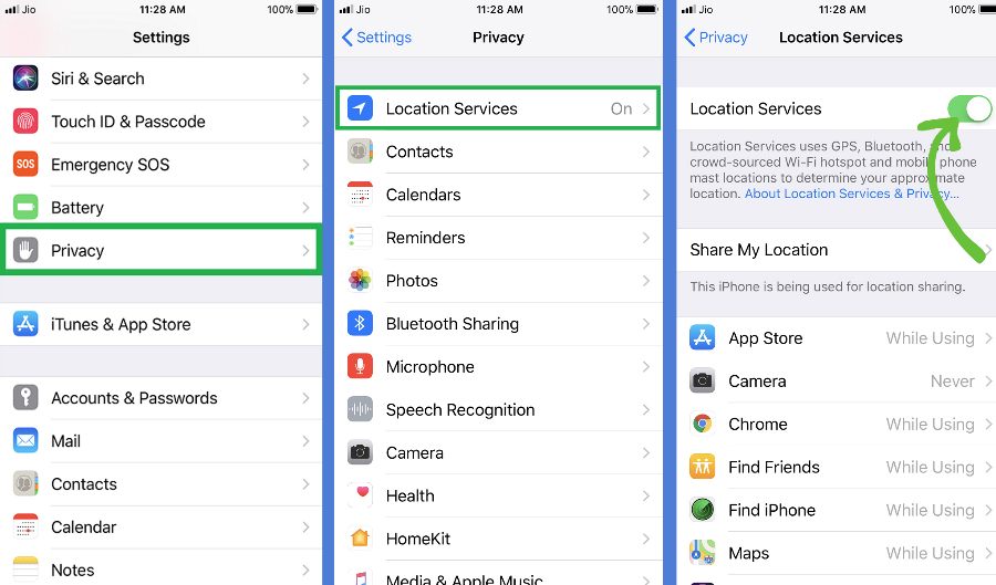 En anden kendsgerning, som du bør tage højde for, er, at geolokaliseringssystemet altid bruger batteri. Enhver form for smartphone bliver drænet, når den skal have adgang til GPS for at få sin geografiske position. I iOS er der en mulighed, der giver visse apps adgang til GPS'en til enhver tid, og som kan forbruge en god mængde energi. For at kontrollere, hvilke apps der kan gøre dette, skal du følge disse trin: