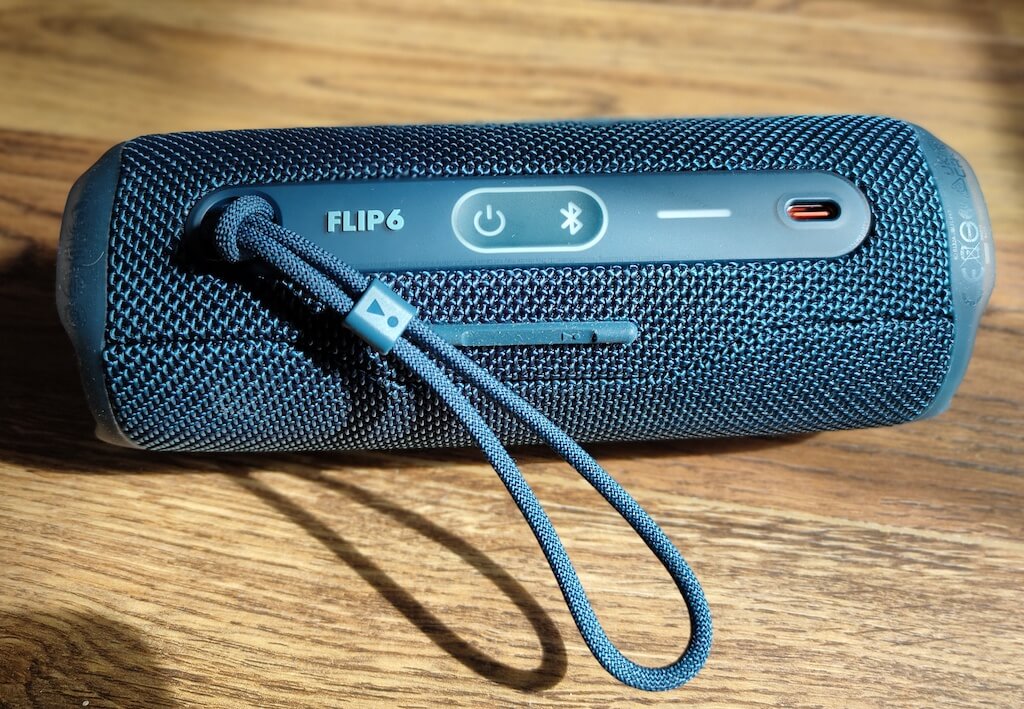 Tænd/sluk-knappen, Bluetooth-knappen og USB-C-opladningsporten er alle de samme steder som Flip 5. Men panelet, de er på, er nu mindre sammenlignet med forgængeren.