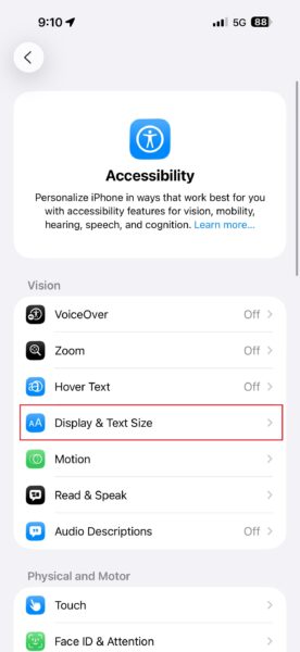 VælgeDisplay og tekststørrelse.