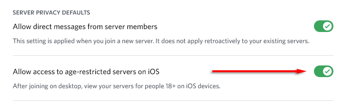 Note:Serverejere kan lave hele NSFW-servere, hvis du ændrer denne indstilling for hver af dine kanaler.