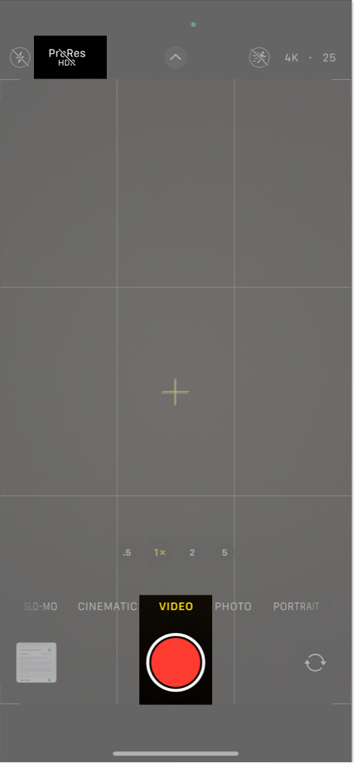 Når du har aktiveret ProRes, skal du åbneKameraapp og skift til videotilstand. Nu, i øverste venstre hjørne, vil du seProResknap. Tryk på den for at vælge, og tryk på optageknappen for at optage din video i ProRes.