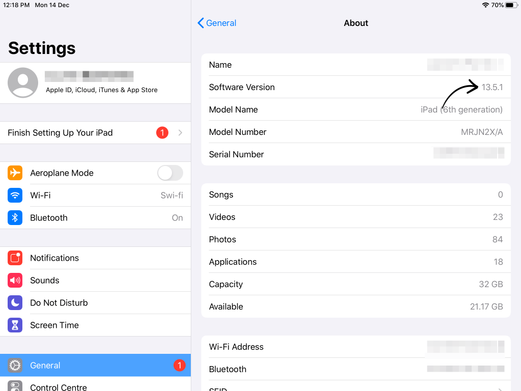 3. Se efter "Softwareversion" eller "iOS-version". Sørg for, at det er iOS 11 eller en nyere version.