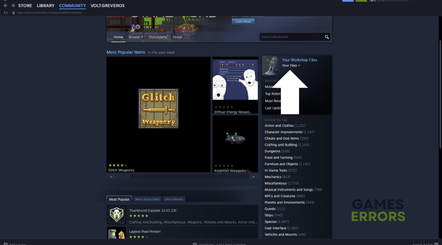 Hvis du bruger mods fraPlaystarbound-fællesskab
