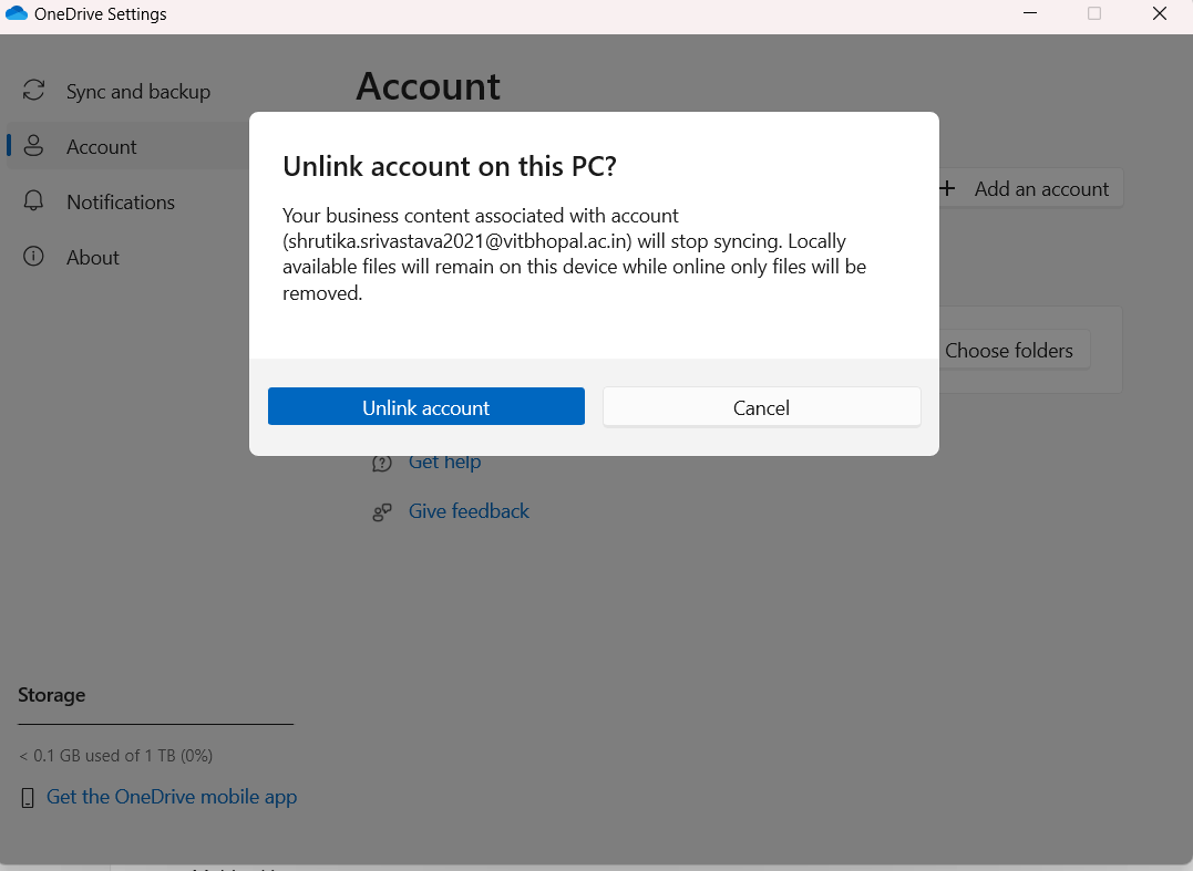 Når du har fået adgang til OneDrive-indstillingerne, kan du fortsætte med at fjerne linket til OneDrive fra din Windows 11-computer: