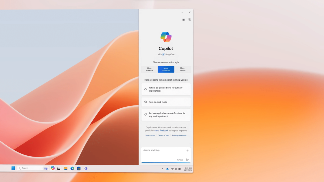 Copilot er en ny AI-drevet assistent, der er integreret i Windows 11. Den er designet til at hjælpe brugere med en række forskellige opgaver, såsom at skrive kode, oprette præsentationer og fejlfinde problemer. For at bruge Copilot kan brugere blot åbne Copilot-sidebjælken ved at klikke på Copilot-ikonet på proceslinjen eller ved at trykke på WIN + C. Når sidebjælken er åben, kan brugerne indtaste deres spørgsmål eller anmodninger, og Copilot vil hjælpe dem.