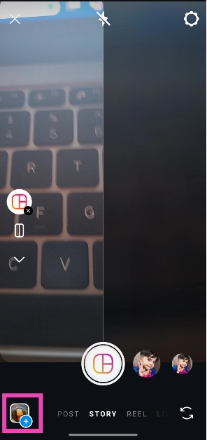 Start Instagram-appen, tryk på plusikonet, skift til fanen Historie, tryk på 'Layout', og tilføj billeder fra din telefons galleri eller brug kameraet til at tage billeder til historien.