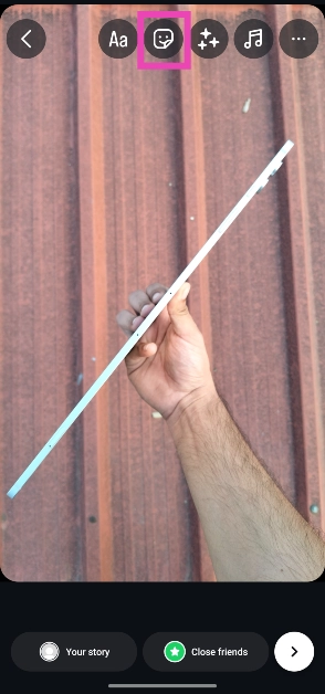 Du kan placere et billede oven på et andet ved at bruge "Foto"-klistermærket på siden for oprettelse af historier. Når du har valgt dette klistermærke, bliver du bedt om at uploade et billede fra din telefons galleri. Når billedet er blevet uploadet, skal du trykke på det for at ændre dets form.