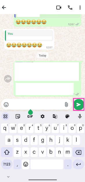 Hvordan sender jeg en tom tekst på WhatsApp?
