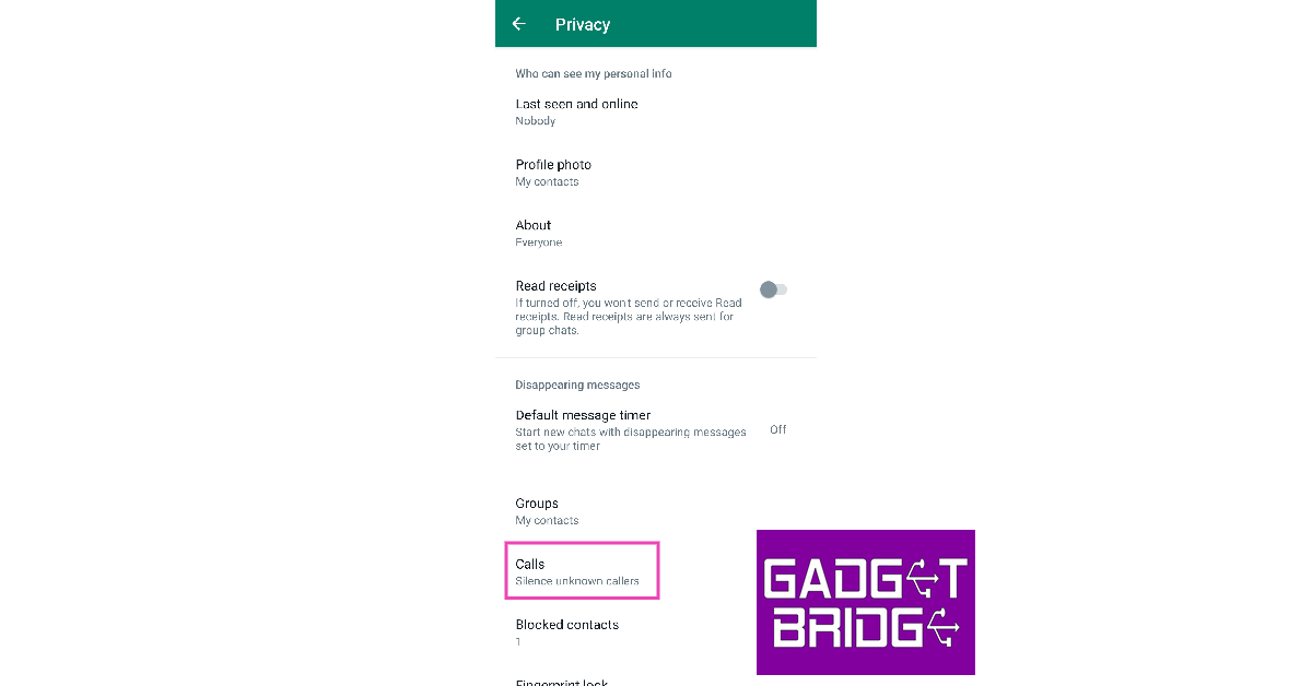 For at slå WhatsApp-opkald fra ukendte numre fra, skal du gå tilWhatsApp>Indstillinger>Privatliv>Opkaldog tænd for vippekontakten for 'Tavsløs for ukendte opkald'.