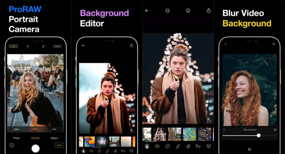 - Slør automatisk baggrunden for allerede taget billeder, og tilføj lav dybdeskarphed for ægte bokeh-effekter