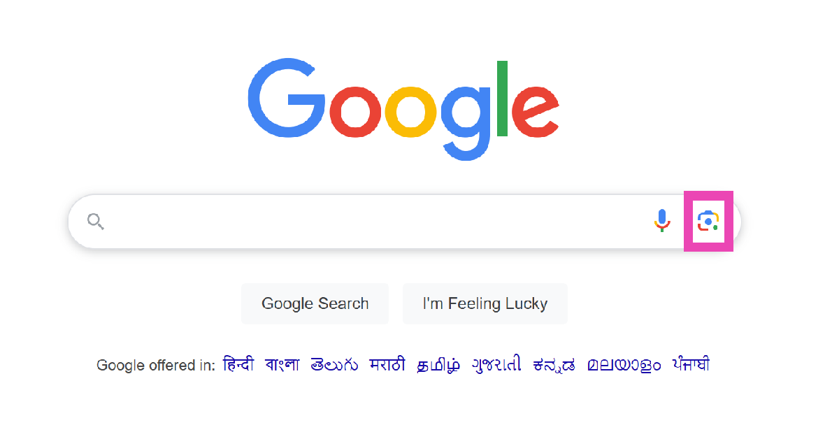 Trin 2:Gå tilGoogle’s homepageog klik påLinse ikon.