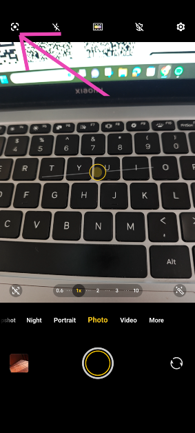Start kameraappen, og klik på stregkodeikonet under udløserknappen. Flyt QR-koden foran kameraet for at scanne den.