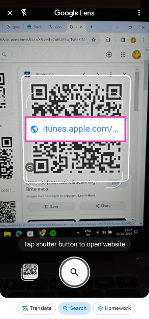 Trin 4:Google Lens vilscanningkoden til dig. Klik påHjemmesidefor at gå til linket, der er indlejret i QR-koden.