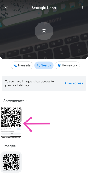 Brug Google Fotos-appen til at scanne en QR-kode i din telefons galleri