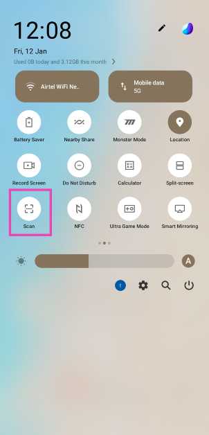 Trin 2:Tryk på'Scan'flise. På nogle telefoner kan denne flise kaldes'QR-scanning'.