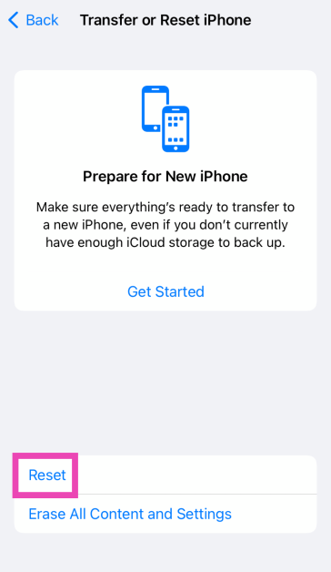 Trin 2:Tryk påOverfør eller nulstil enhed.