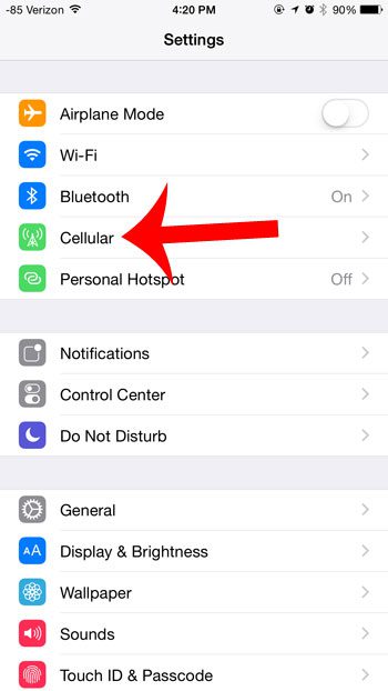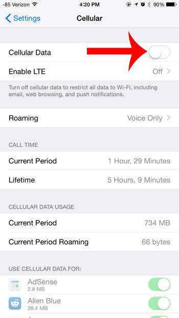 Sådan slukker du for alle mobildata på en iPhone 6 Plus (vejledning med billeder)