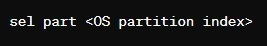 Kør listedel (som ville vise alle partitioner for at identificere din OS-partition og notere dens indeksnummer på den valgte disk.)