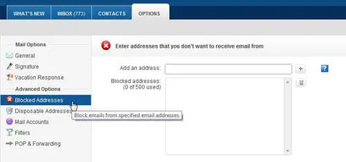 Men i sjældne tilfælde er den løsning muligvis ikke effektiv. For afsendere, der falder ind under denne kategori, har du mulighed for at blokere deres e-mailadresser helt.