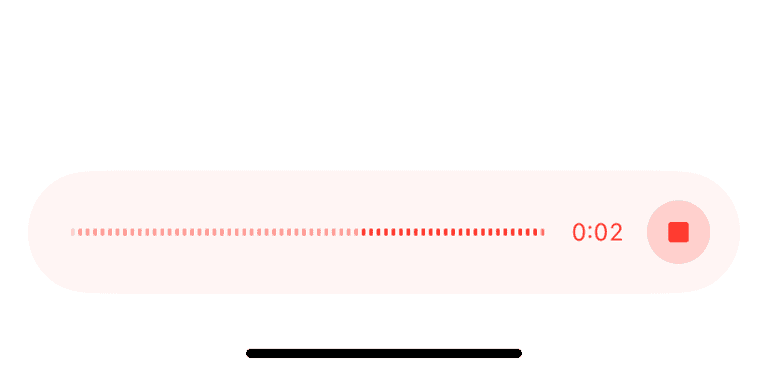 - Tryk og hold på talemeddelelsesikonetud for tekstindtastningsfeltet. Det skal ligne 5 røde streger