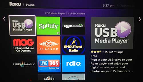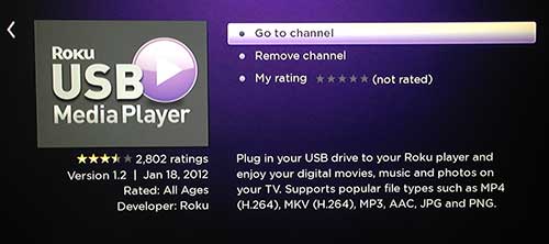 Mens Roku 3 har en USB-port på den, er der ikke et indbygget program, der giver dig mulighed for at drage fordel af det. Heldigvis kan du downloade en kanal fra Roku Channel Store, som giver dig en grænseflade til at navigere og afspille indholdet på din USB-harddisk.