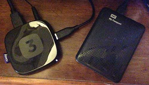 Tilslut en ekstern harddisk til Roku 3