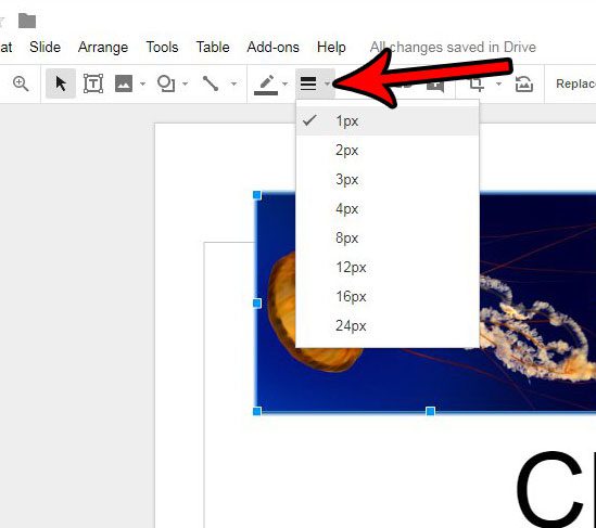 Klik på billedet med rammen, og klik derefter påGrænsevægtknappen på værktøjslinjen og vælg den ønskede kantbredde.