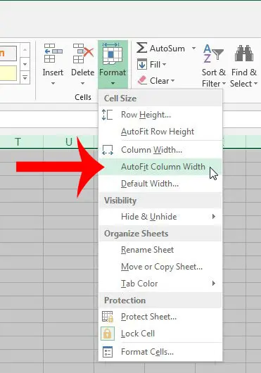Trin 4: Klik påFormatknappen iCellersektionen af navigationsbåndet, og klik derefter påAutotilpas kolonnebreddevalgmulighed.