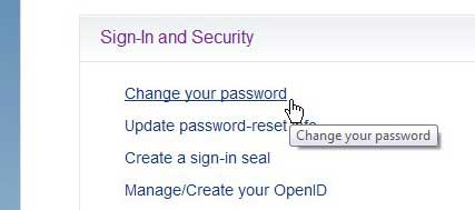 Trin 5: Klik påSkift din adgangskodelink iLogin og sikkerhedsektion af vinduet.
