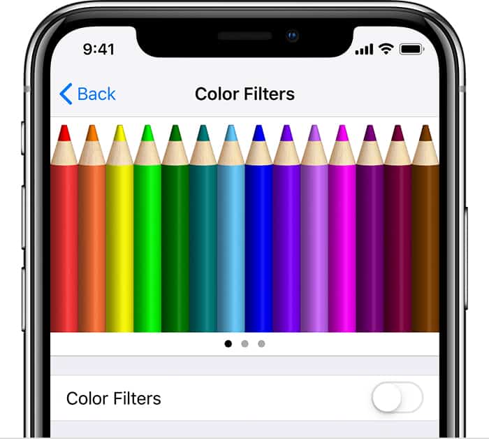 - Få adgang til Indstillinger > Tilgængelighed > Farvekorrektion.