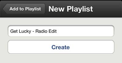 Trin 7: Indtast et navn til din afspilningsliste i feltet øverst på skærmen, og tryk derefter påSkabeknap.