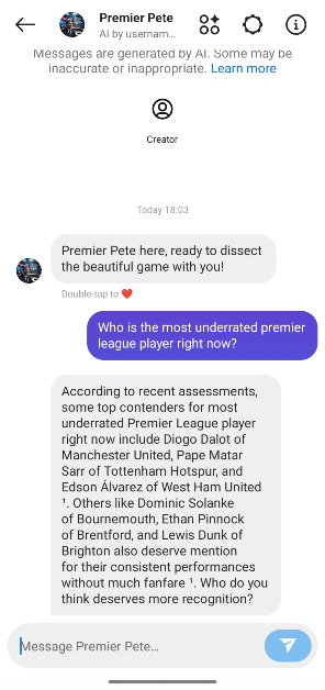 Instagram var en af de første sociale medieplatforme, der hoppede med på AI-vognen. Brugere kan udkast til svar, oprette billeder og sende AI-klistermærker ved hjælp af chatbot. Men det er ikke det hele. 'AI Studio' på Instagram lader brugere skabe en AI-karakter, som de kan føre en samtale med. AI-karakterens karakter og svar kan formgives af dens skaber. Brugere kan også chatte med AI-karakterer oprettet af andre brugere på platformen. Sådan kan du oprette en AI-chatbot på Instagram.
